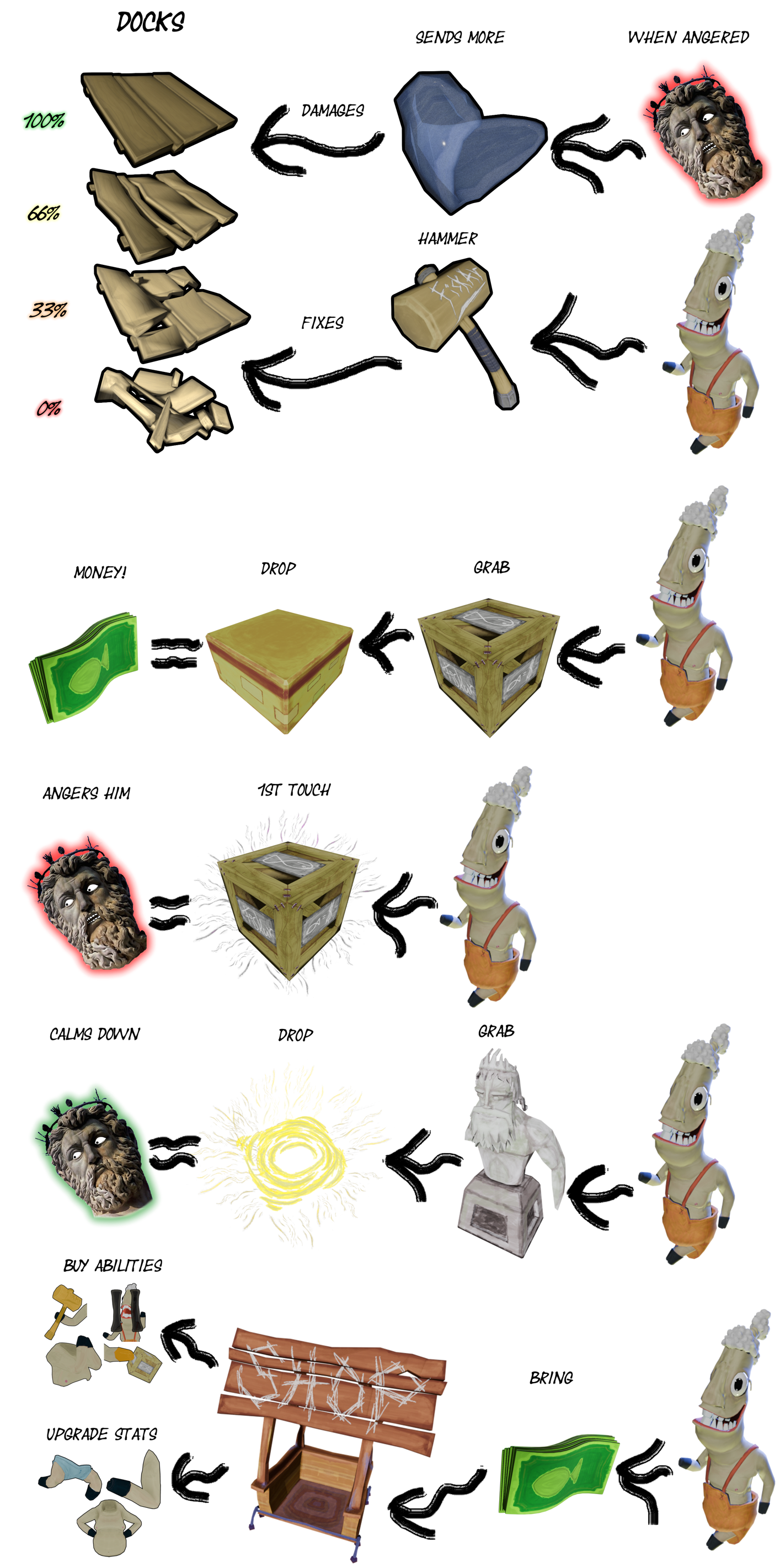 Objective - Safely carry crates of worthy bounty off poachers ships, that regularly resupply your harbour. These crates garner you money, which you can spend at the store to upgrade your capabilities and claim neat abilities to assist you in your arduous task at hand. Stay safe, don't anger the Neptune for his waves are deadly and his fury ceaseless. Look to appease him to ease his harassments.